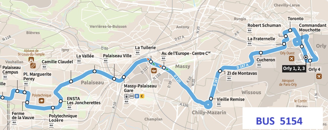 OrlyVal | Frequency 5 to 7 min, 6 min ride, stop RER B station “Antony” then take the RER B (see public transportation above) or